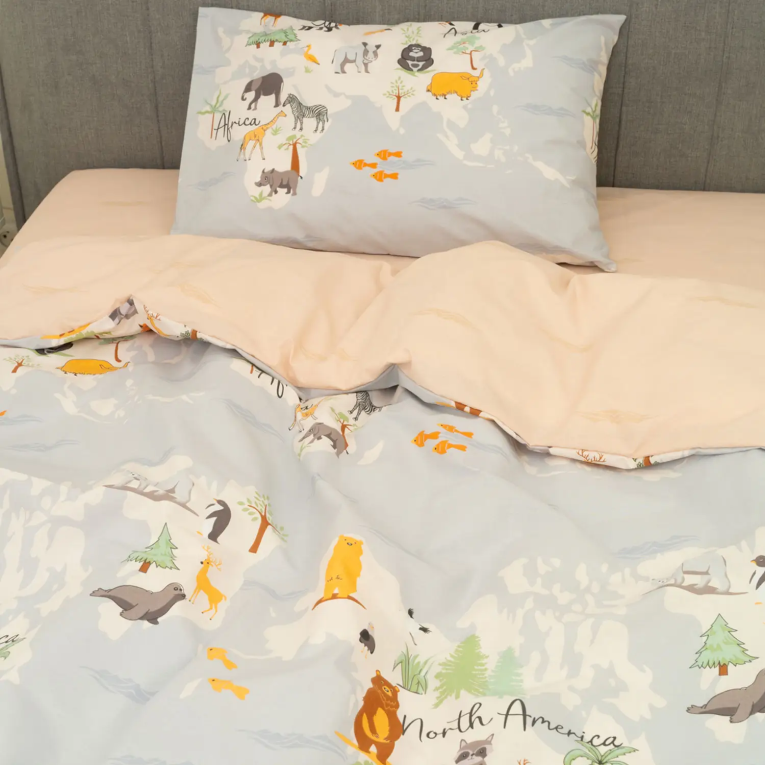 Ткань ранфорс плотная, приятная на ощупь и производят ее из 100% хлопковой крученной нити. Натуральность материала дает возможность дышать телу во время сна. А модель детская Вилюта 24334 с интересным принтом, не только приукрасит спальню, но и подарит подросткам яркие сны. Подойдет как для мальчиков так и для девочек.