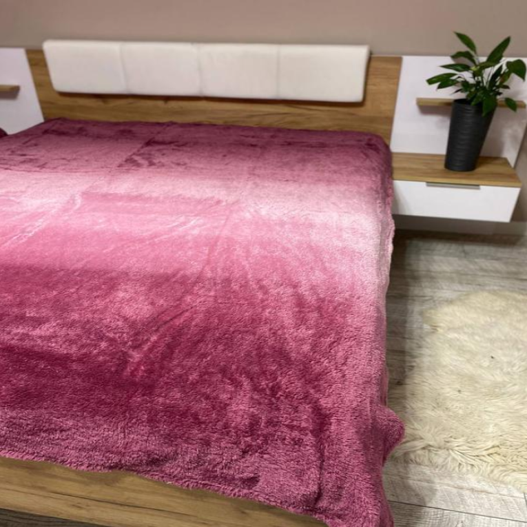 Меховой плед - покрывало на кровать Colorful Home Омбре розовый градиент