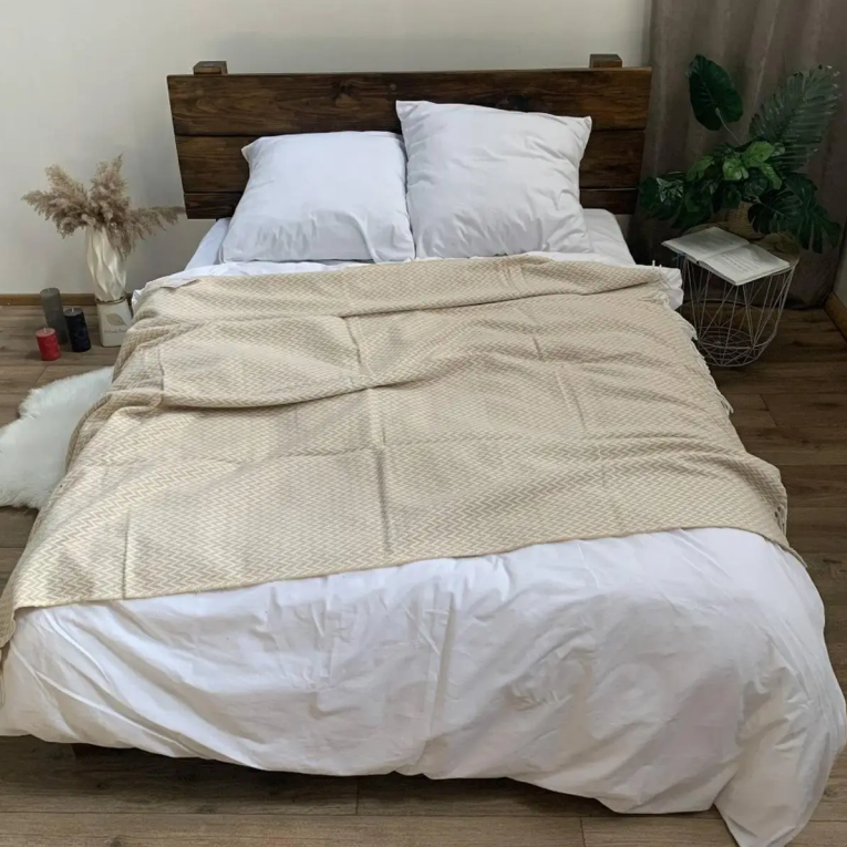 Обращаем внимание рисунок товара "Хлопковый плед Влади Валенсия двуспальный бело - песочный" на картинке может немного отличаться от рисунка в реальном комплекте, данное различие продиктовано тем что новая партия ткани может иметь немного смещенный узор. А насыщенность и тон оттенка может изменяться в зависимости от настройки вашего экрана телефона или монитора.