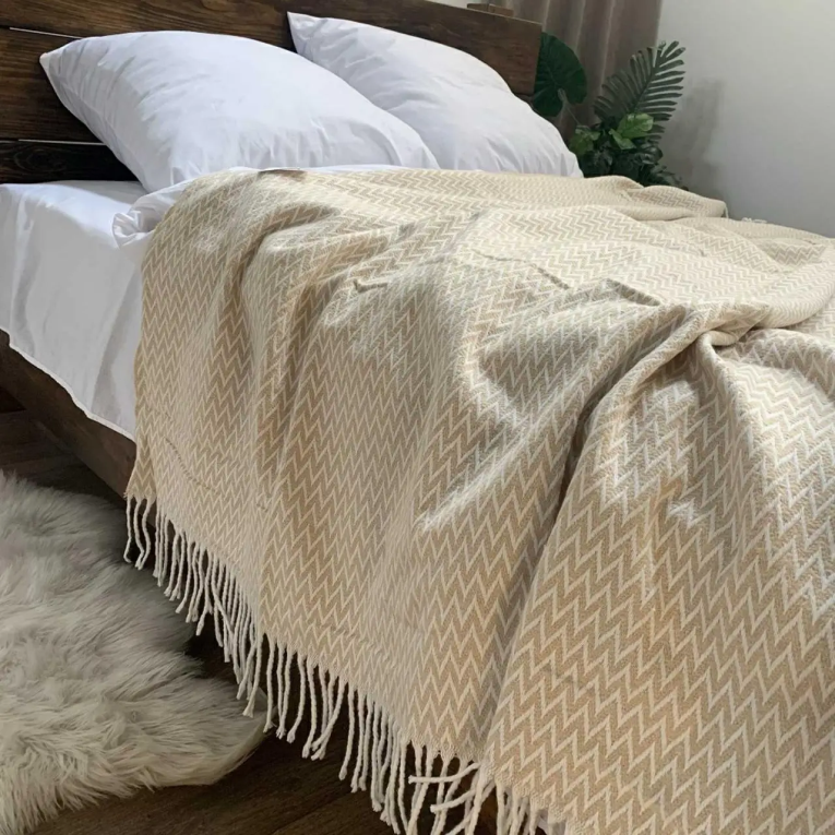 Двуспальный плед Влади Валенсия 170х210 бело - песочный №1/Antonio