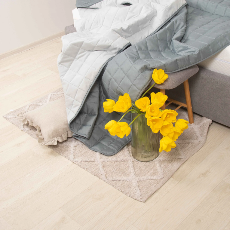 Покупая стеганое покрывало Вилюта Дуэт можно использовать как покрывало на кровать и как одеяло. А благодаря прошивке, наполнитель в середине не сбивается.
