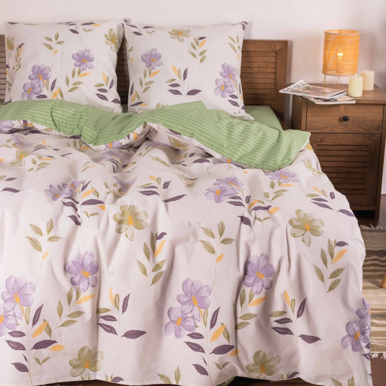 Ткань ранфорс плотная, приятная на ощупь и производиться из 100% хлопковой крученной нити. Натуральность материала дает возможность дышать телу во время сна. А выбирая комплект 23225 Вилюта двуспальное с оригинальным принтом, вы получаете также и эстетическое наслаждение.
