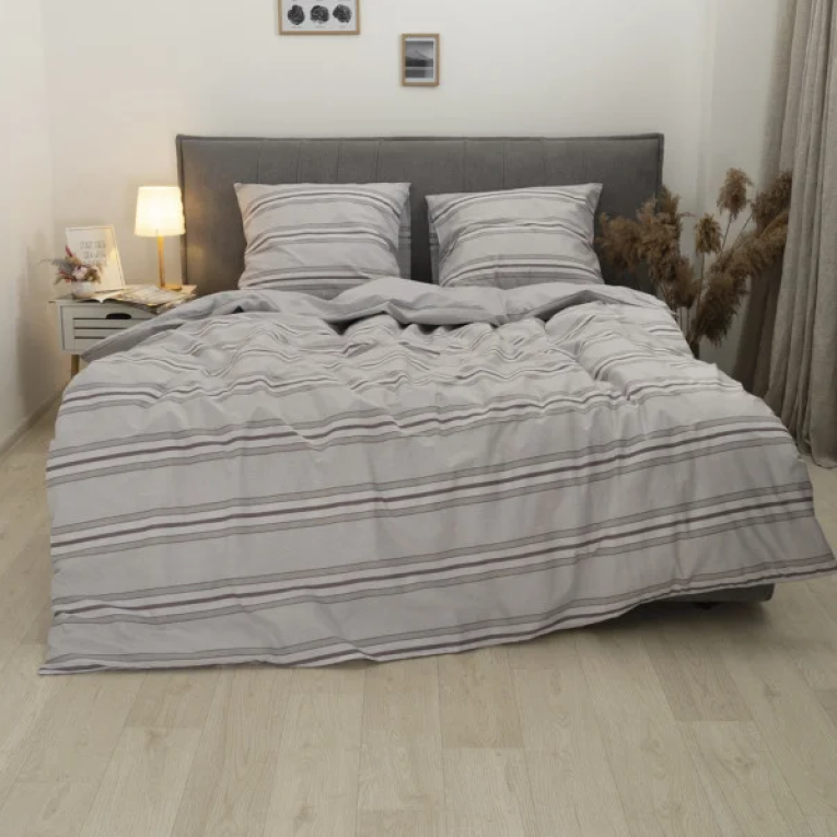 Ткань ранфорс плотная, приятная на ощупь и производят ее из 100% хлопковой крученной нити. Натуральность материала дает возможность дышать телу во время сна. Выбирая двуспальный комплект 24267 Вилюта, с интересным принтом, вы получаете также и эстетическое наслаждение.