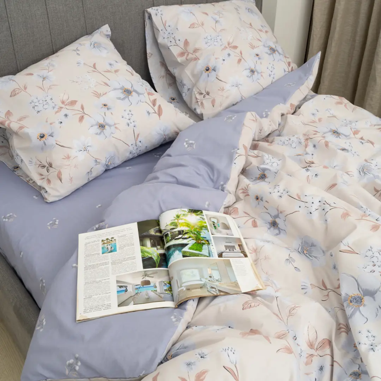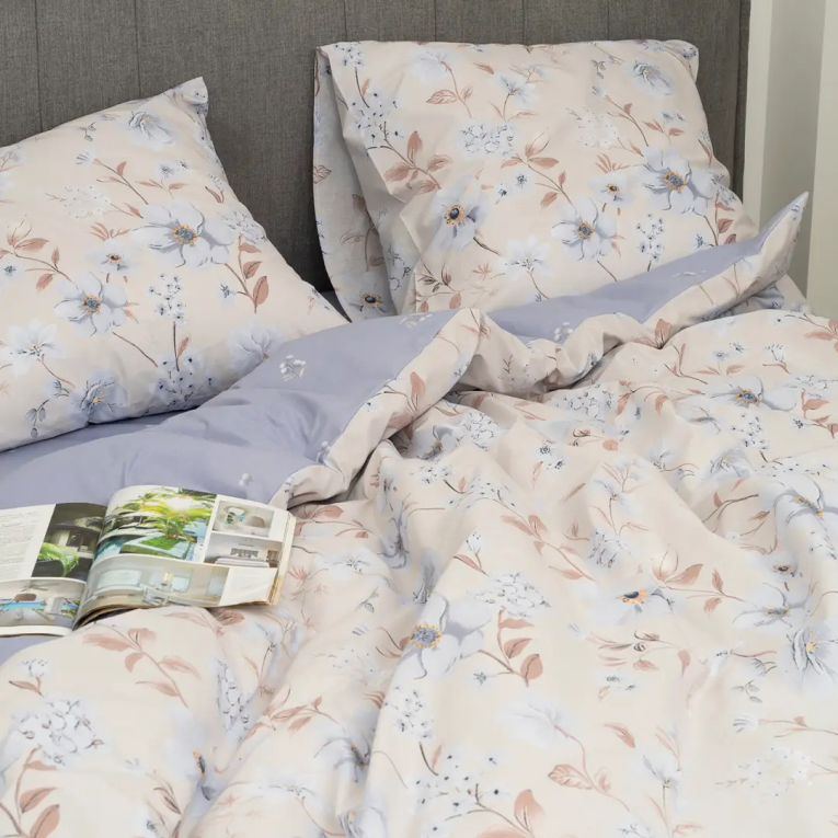 Ткань ранфорс плотная, приятная на ощупь и производят ее из 100% хлопковой крученной нити. Натуральность материала дает возможность дышать телу во время сна. А выбирая комплект 24322 Вилюта двуспальное с оригинальным принтом, вы получаете также и эстетическое наслаждение.
