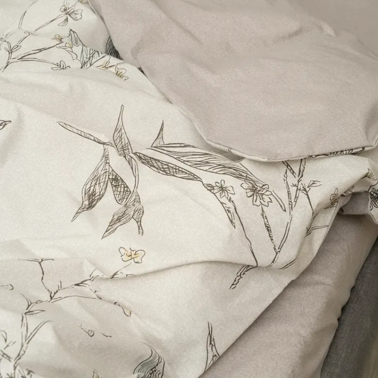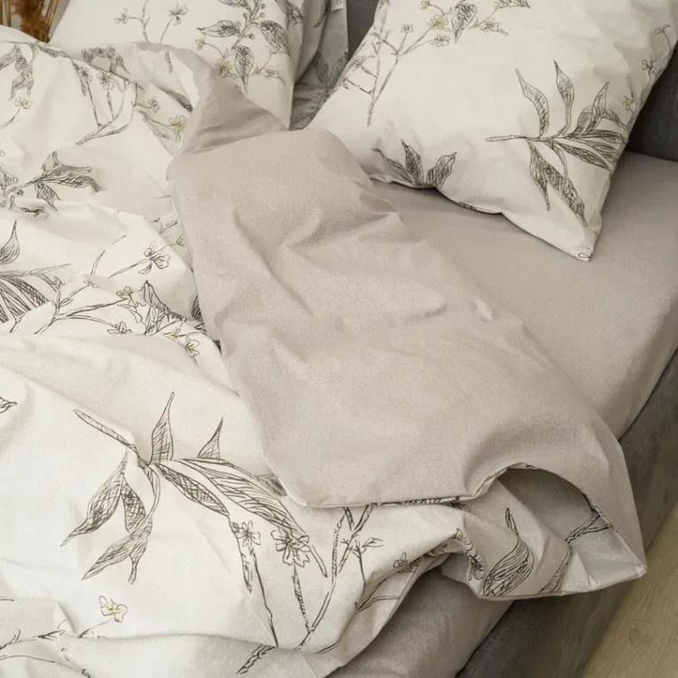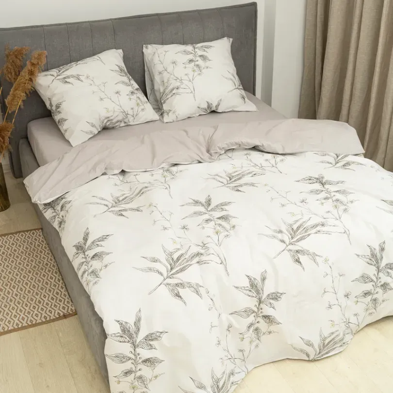 Ткань ранфорс плотная, приятная на ощупь и производят ее из 100% хлопковой крученной нити. Натуральность материала дает возможность дышать телу во время сна. А выбирая комплект 24323 Вилюта двуспальное с оригинальным принтом, вы получаете также и эстетическое наслаждение.