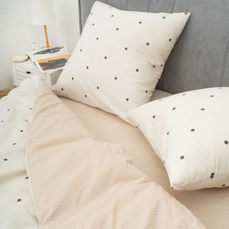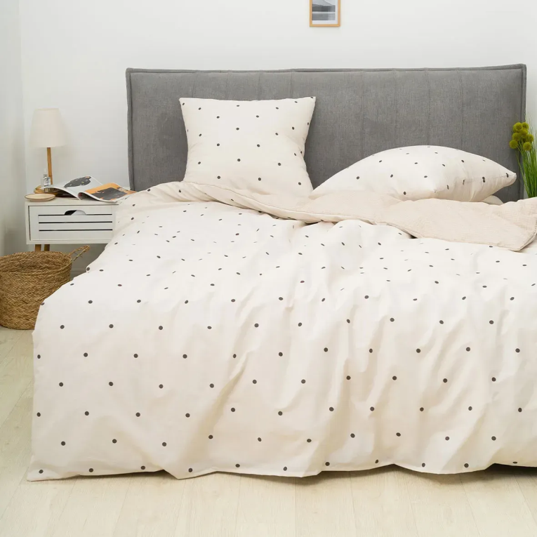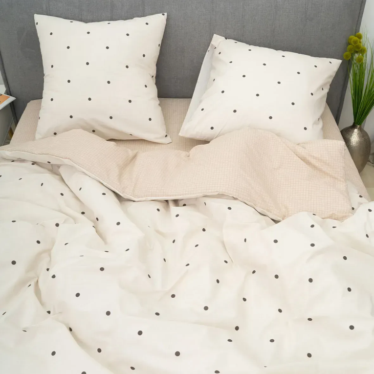 Ткань ранфорс плотная, приятная на ощупь и производят ее из 100% хлопковой крученной нити. Натуральность материала дает возможность дышать телу во время сна. Выбирая двуспальный комплект 25365 Вилюта, с интересным принтом, вы получаете также и эстетическое наслаждение.