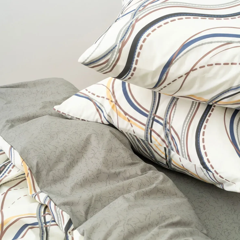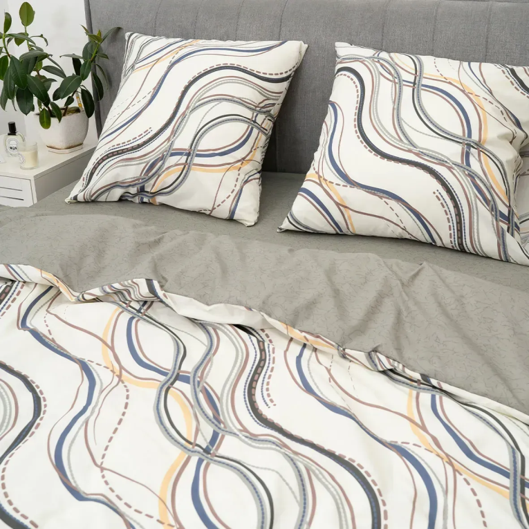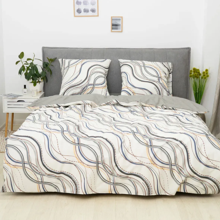 Ткань ранфорс плотная, приятная на ощупь и производят ее из 100% хлопковой крученной нити. Натуральность материала дает возможность дышать телу во время сна. А выбирая комплект 25379 Вилюта двуспальное, с оригинальным принтом, вы получаете также и эстетическое наслаждение.