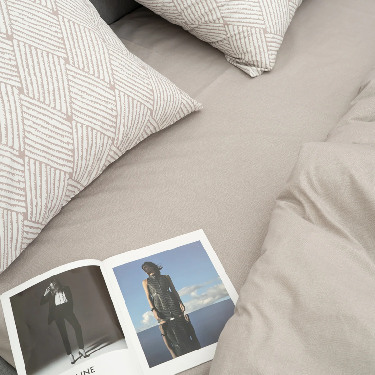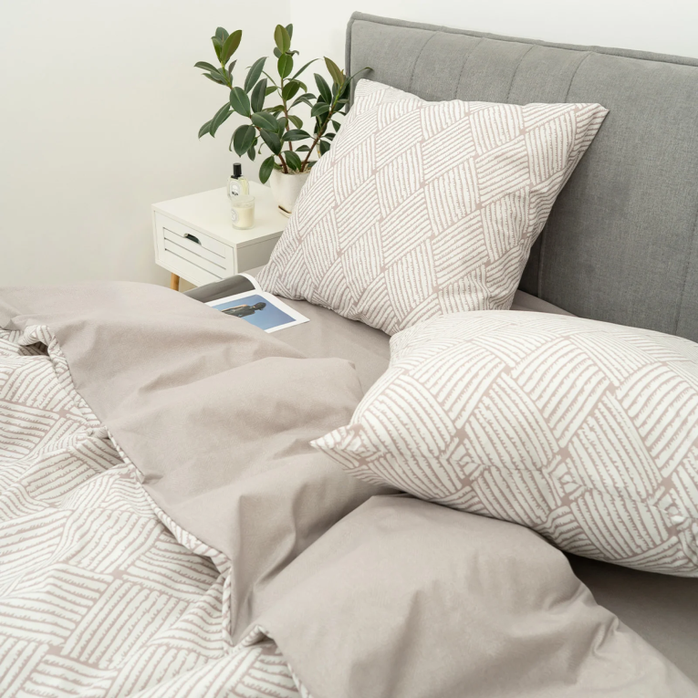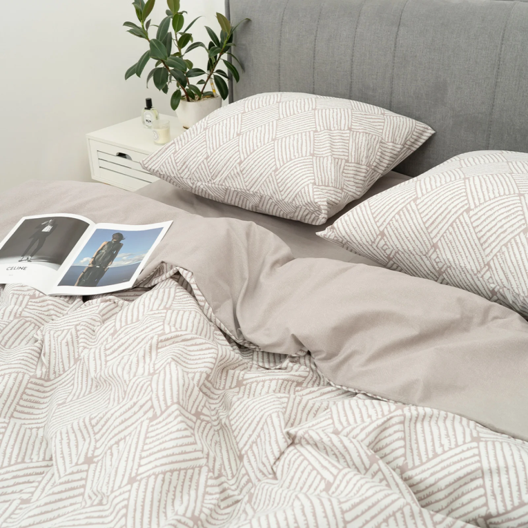 Ткань ранфорс плотная, приятная на ощупь и производят ее из 100% хлопковой крученной нити. Натуральность материала дает возможность дышать телу во время сна. Выбирая двуспальный комплект 25381 Вилюта, с интересным принтом, вы получаете также и эстетическое наслаждение.