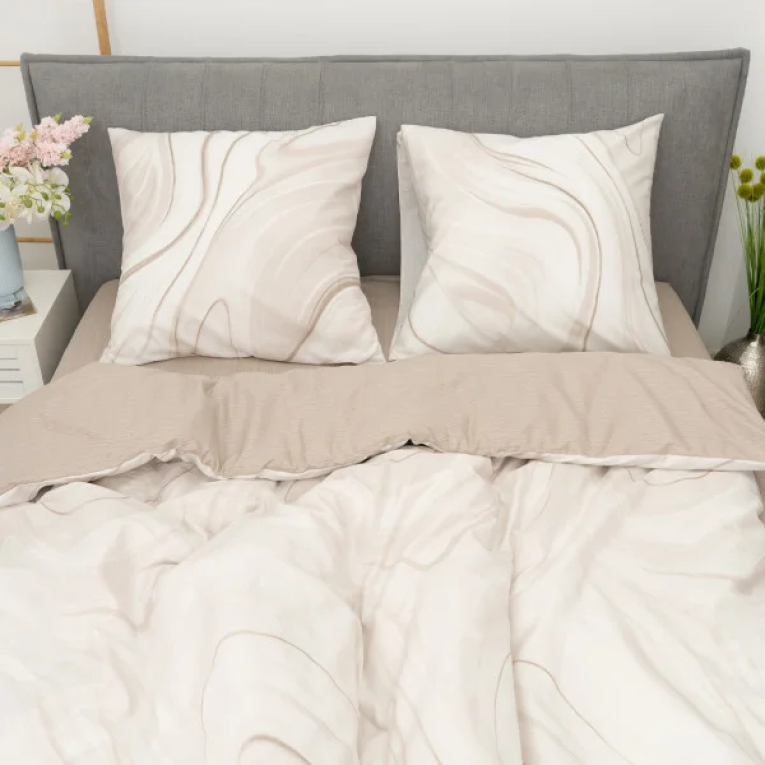 Практичный вариант, цена выше чем у ранфорса но и качество выше. Легкий в уходе, способен выдержать многоразовые стирки и при этом цвет остается таким же насыщенным а ткань гладкой.