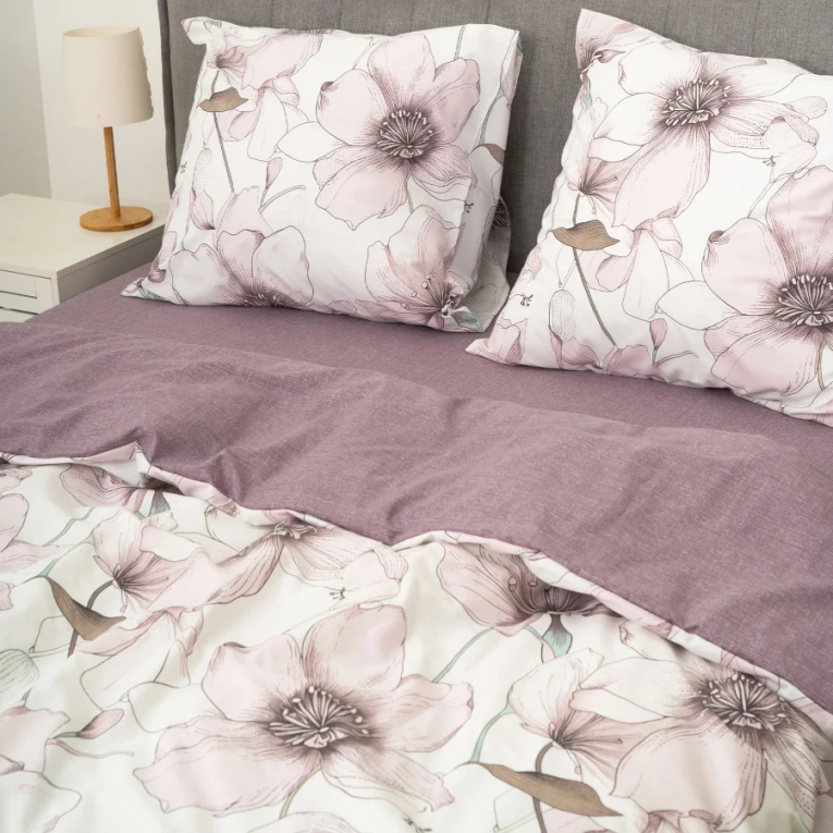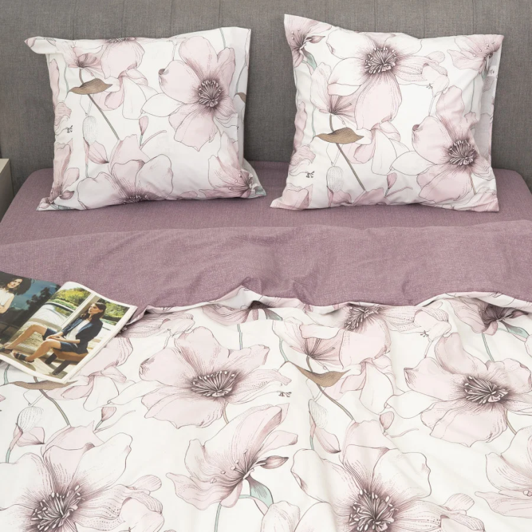 Ткань ранфорс плотная, приятная на ощупь и производят ее из 100% хлопковой крученной нити. Натуральность материала дает возможность дышать телу во время сна. А выбирая комплект Вилюта 24303 полуторный с интересным принтом, вы получаете также эстетическое наслаждение.