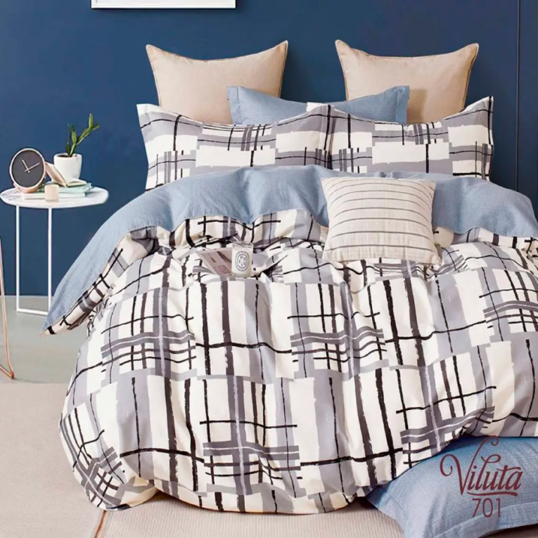 Говоря про ткань сатин можно сказать что это плотная ткань определенного саржевого плетения, за счет которого материал с одной стороны гладкий как шелк. Satin производиться из 100% хлопковой нити. Натуральность материала дает возможность дышать телу во время сна. Комплект модели Вилюта 701 евро размера, с интересным принтом, приукрасит каждую спальню.