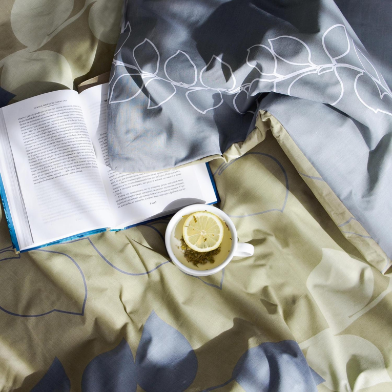 Ткань ранфорс плотная, приятная на ощупь и производиться из 100% хлопковой крученной нити. Натуральность материала дает возможность дышать телу во время сна. А модель 20105 Вилюта ранфорс евро размера с рисунком листьев на горчичном фоне будет приносить эстетическое наслаждение обоим супругам.