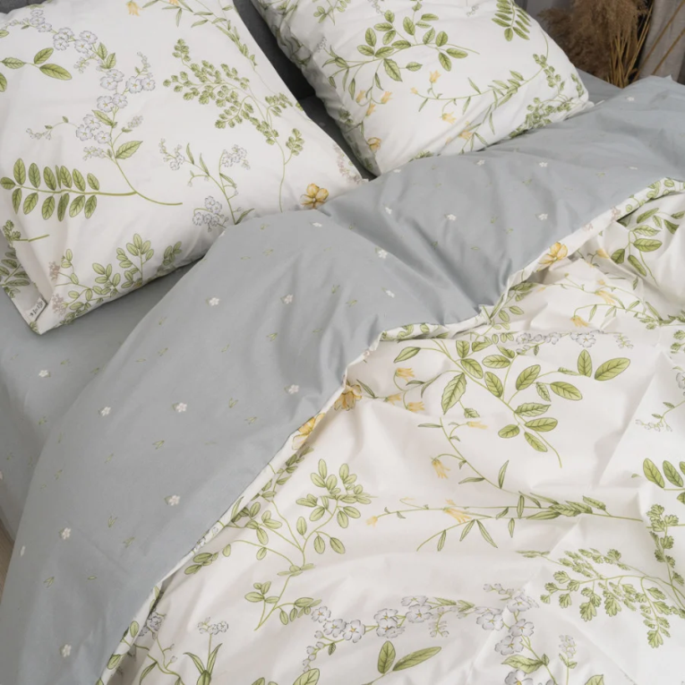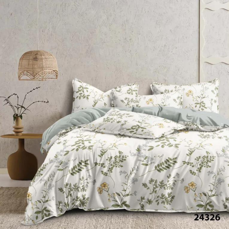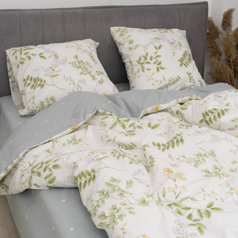 Ткань ранфорс плотная, приятная на ощупь и производят ее из 100% хлопковой крученной нити. Натуральность материала дает возможность дышать телу во время сна. А выбирая комплект Вилюта 24326, с интересным принтом на светлом фоне, вы привнесете свежесть в интерьер.