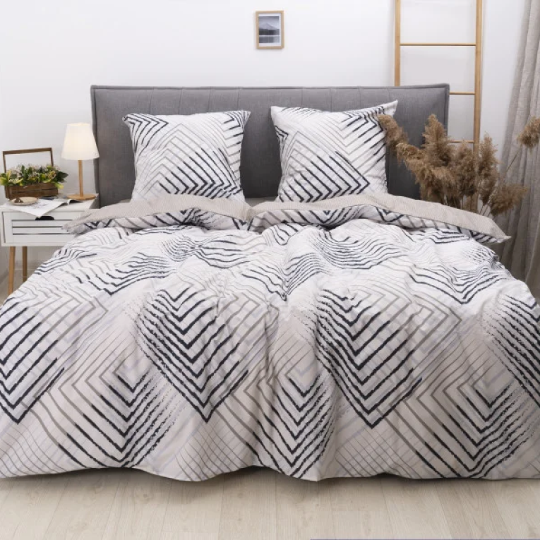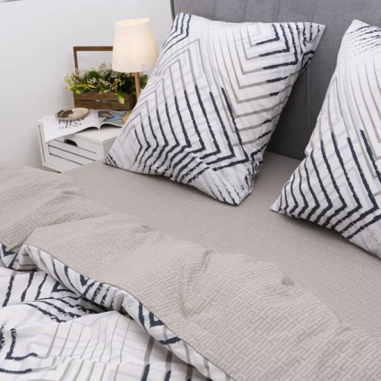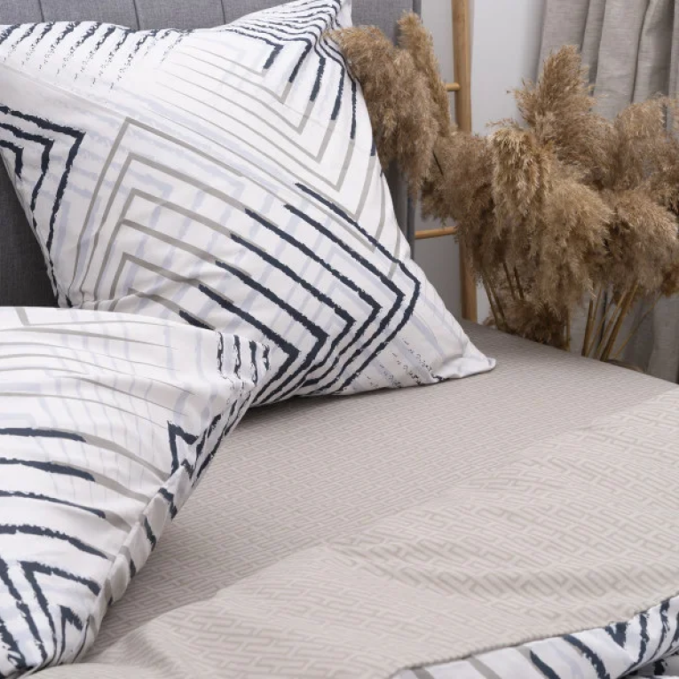 Ткань ранфорс плотная, приятная на ощупь и производят ее из 100% хлопковой крученной нити. Натуральность материала дает возможность дышать телу во время сна. А выбирая комплект Вилюта 24256, с интересным принтом на светлом фоне, вы привнесете свежесть в интерьер.