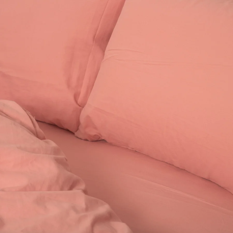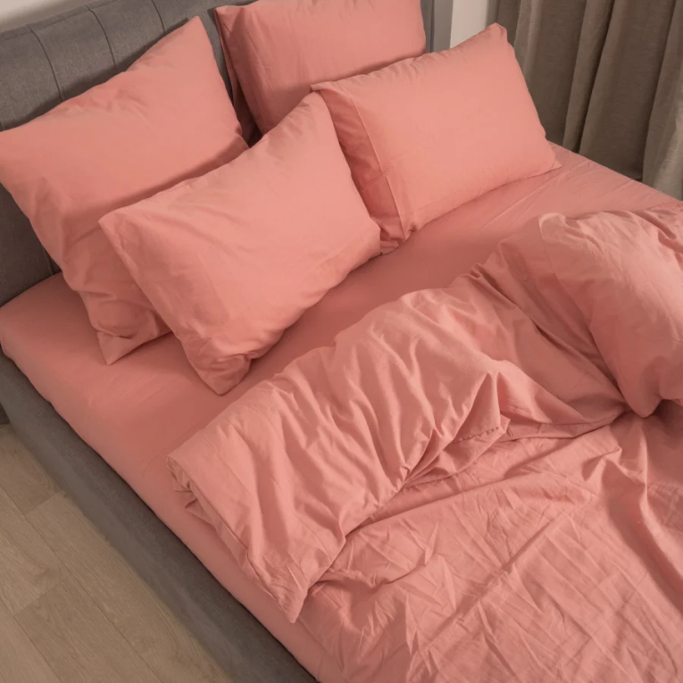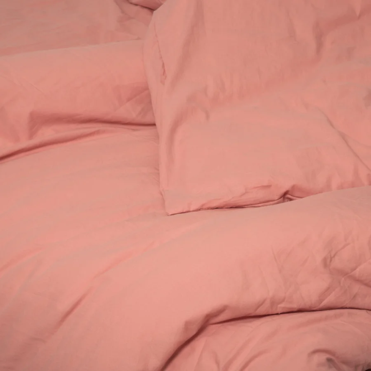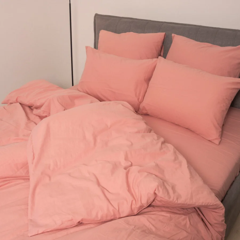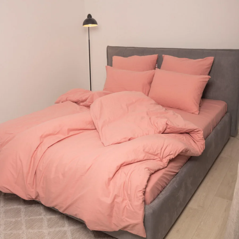 дизайнерская расцветка комплекта постельного Вилюта Wash из вареного хлопка кораллового цвета, приукрасит и сделает роскошной каждую спальню. Подойдет на двуспальную