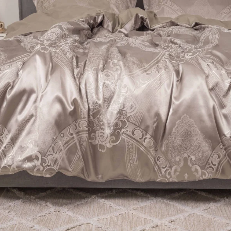 Говоря про ткань сатин можно сказать что это плотная ткань определенного саржевого плетения, за счет которого материал с одной стороны гладкий как шелк. Satin производиться из 100% хлопковой нити. Натуральность материала дает возможность дышать телу во время сна. А комплект модели 2319 Вилюта сатин жаккард Тиаре евро, дизайнерской расцветки приукрасит и сделает роскошной каждую спальню. Подойдет на двуспальную семейную кровать взрослым.