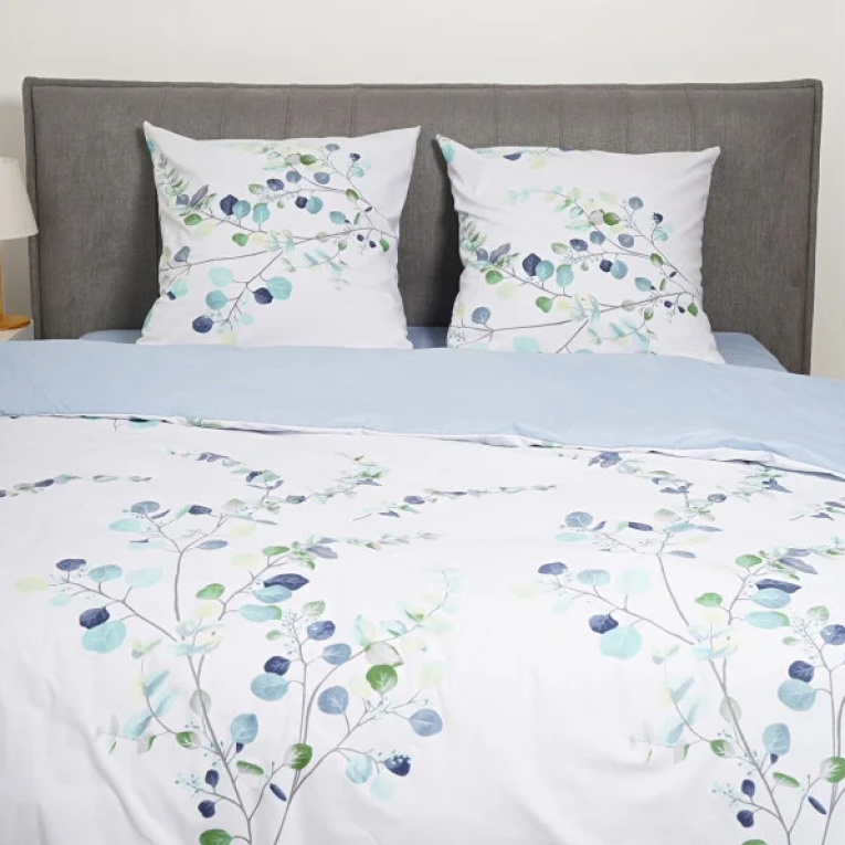 Ткань ранфорс плотная, приятная на ощупь, производят ее из 100% хлопковой крученной нити. Натуральность материала дает возможность дышать телу во время сна. Красивый комплект Вилюта 24245, с цветами на светлом фоне, будет приносить эстетическое наслаждение.