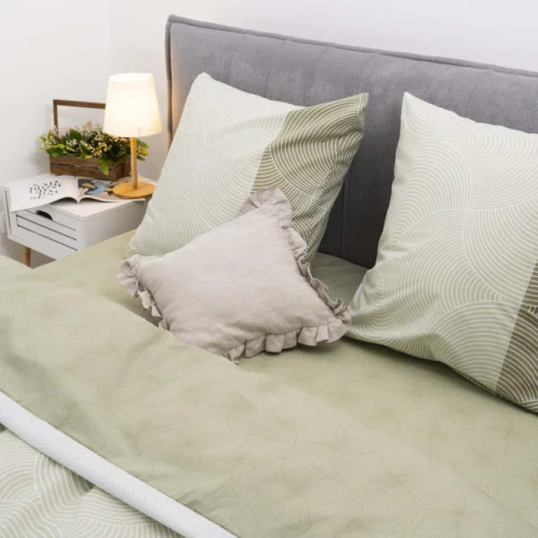 Ткань ранфорс плотная, приятная на ощупь и производят ее из 100% хлопковой крученной нити. Натуральность материала дает возможность дышать телу во время сна. А набор Вилюта 24260 с интересным принтом на светлом фоне, будет приносить эстетическое наслаждение.