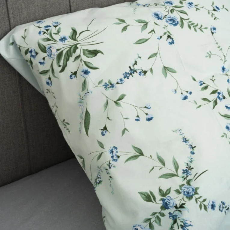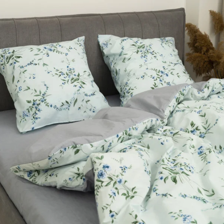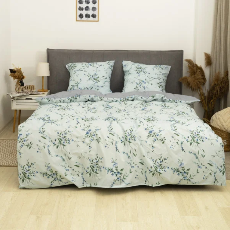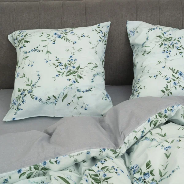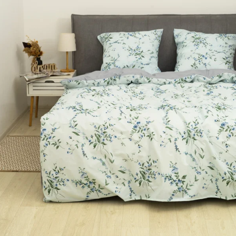 Ткань ранфорс плотная, приятная на ощупь и производят ее из 100% хлопковой крученной нити. Натуральность материала дает возможность дышать телу во время сна. А набор Вилюта 24301 с интересным принтом на светлом фоне, будет приносить эстетическое наслаждение.