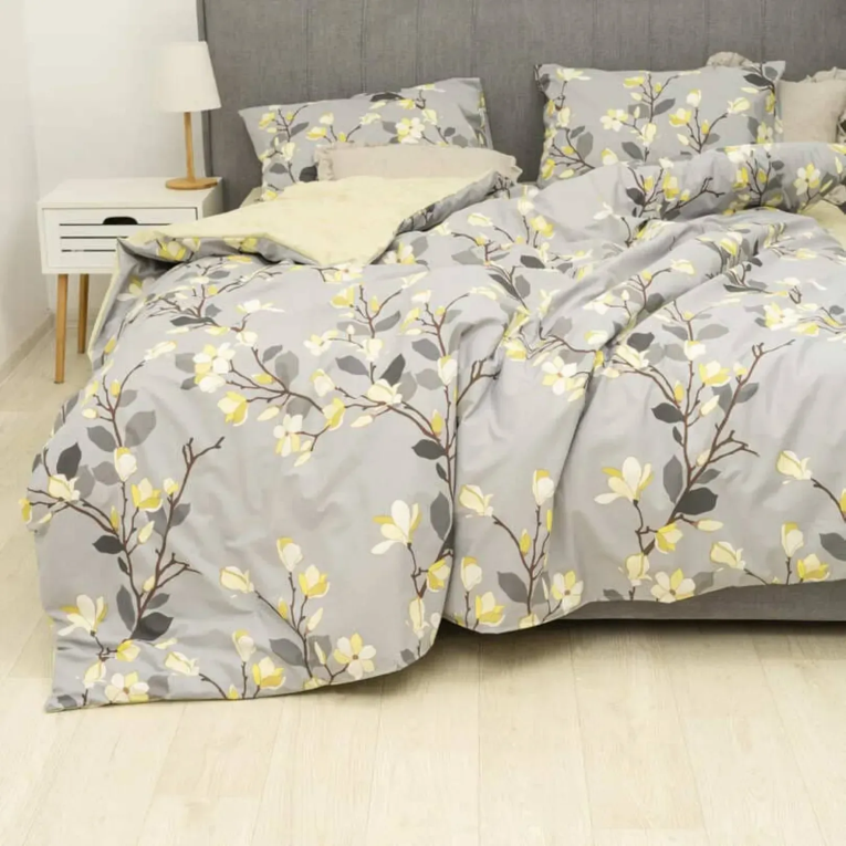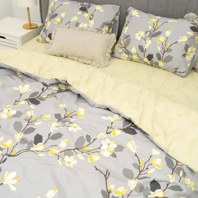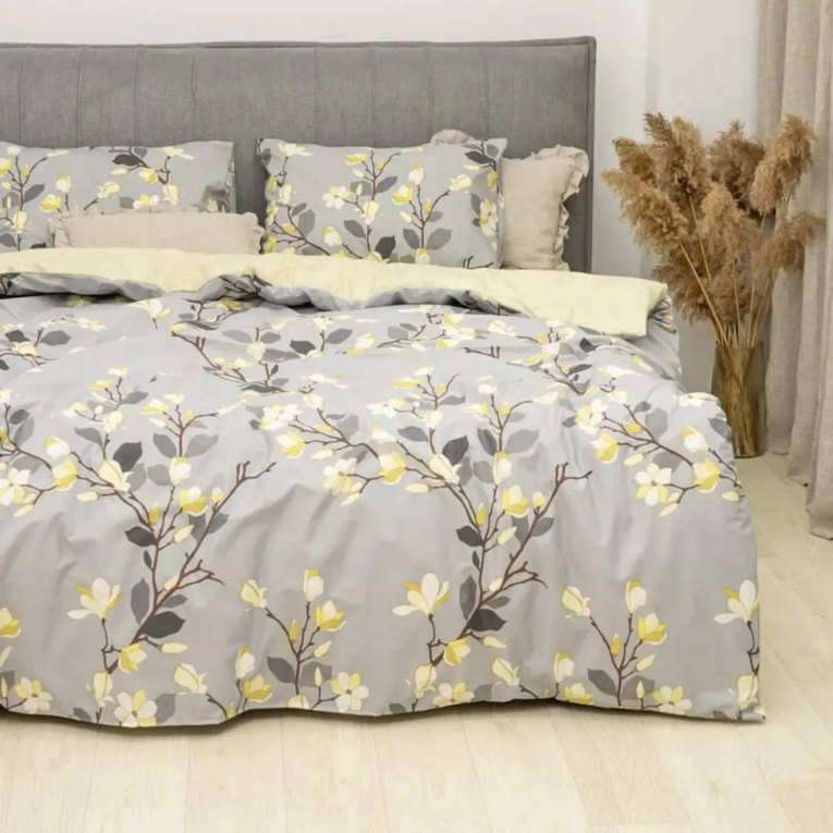 Ткань ранфорс плотная, приятная на ощупь и производят ее из 100% хлопковой крученной нити. Натуральность материала дает возможность дышать телу во время сна. А набор Вилюта 24308 с интересным принтом на светлом фоне, будет приносить эстетическое наслаждение.