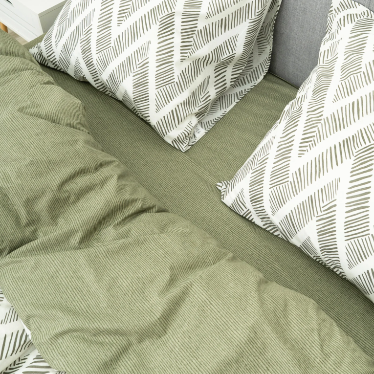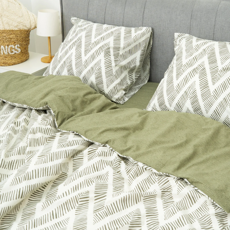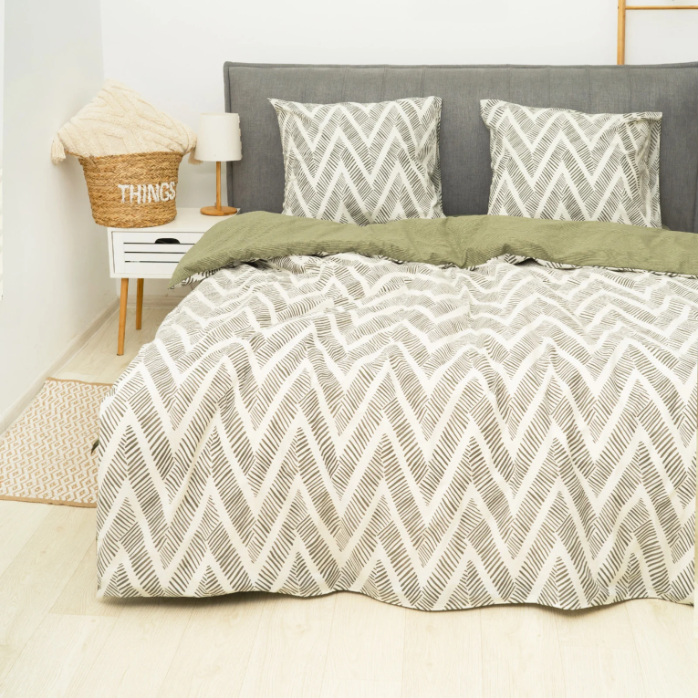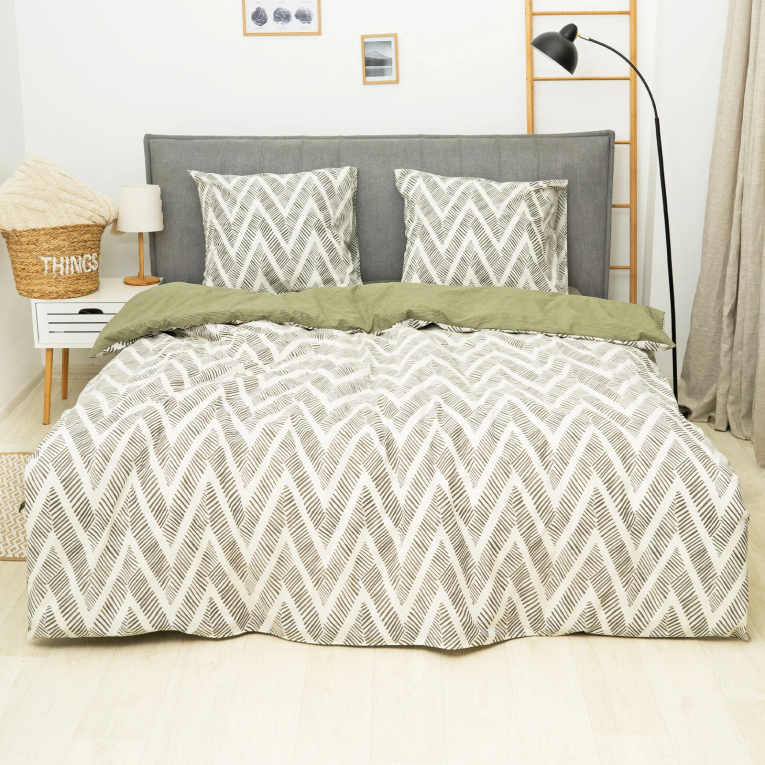Ткань ранфорс плотная, приятная на ощупь и производят ее из 100% хлопковой крученной нити. Натуральность материала дает возможность дышать телу во время сна. А набор Вилюта 24349 с интересным принтом на светлом фоне, будет приносить эстетическое наслаждение.
