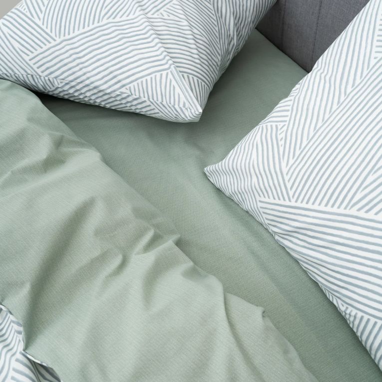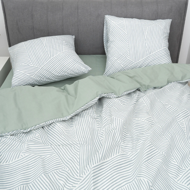 Ткань ранфорс плотная, приятная на ощупь и производят ее из 100% хлопковой крученной нити. Натуральность материала дает возможность дышать телу во время сна. А набор Вилюта 25370 с интересным принтом на светлом фоне, будет приносить эстетическое наслаждение.
