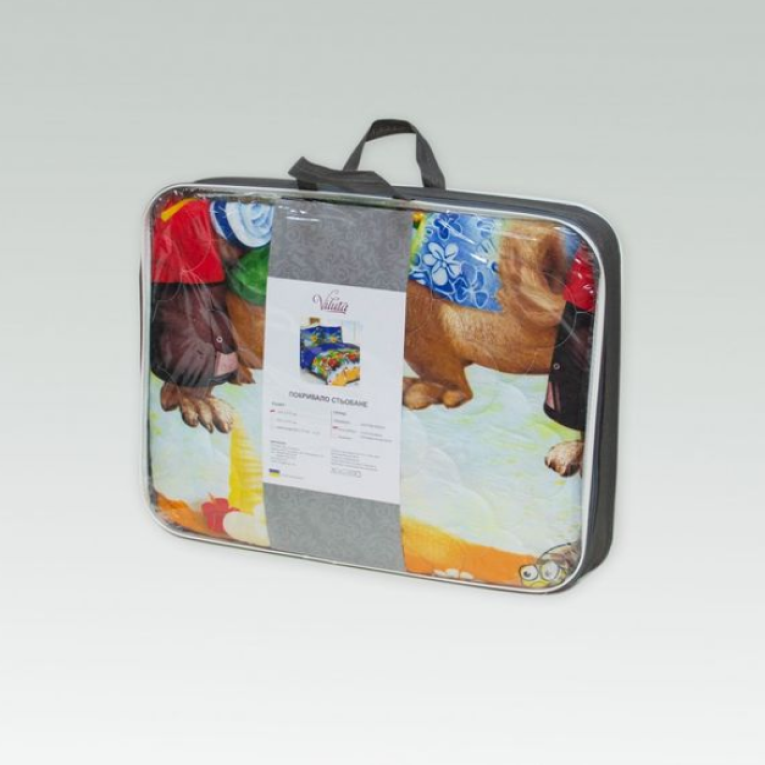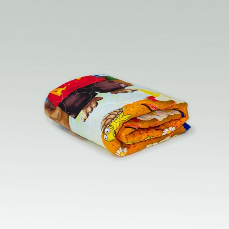 Говорячи про тканину чохла, можна сказати що мікрофібра практична у догляді та зносостійка, швидко сохне після прання і тримає свою форму. А стьобане дитяче покривало Вілюта 65 полуторного розміру з малюнком мультяшних героїв на синьому фоні прикрасить спальню. Підійде як для хлопчиків так і для дівчаток.