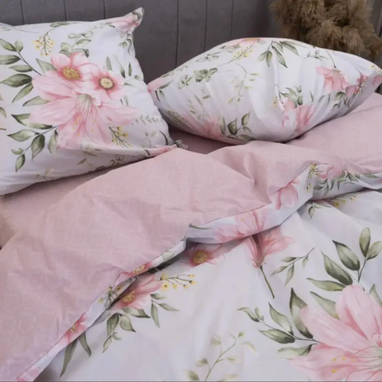 Тканина ранфорс щільна, приємна на дотик і виготовляеться із 100% бавовняної крученої нитки. Натуральність матеріалу дає можливість дихати тілу під час сну. Вибираючи двоспальний комплект 24255 Вілюта ранфорс, з принтом квітів на світлому фоні, ви отримаєте також й естетичну насолоду.
