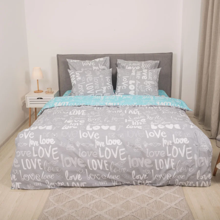 Тканина ранфорс щільна, приємна на дотик і виготовляеться із 100% бавовняної крученої нитки. Натуральність матеріалу дає можливість дихати тілу під час сну. А вибираючи полуторний комплект Вілюта 17148 ранфорс з принтом "Love" на сірому фоні, ви отримаєте також естетичну насолоду.