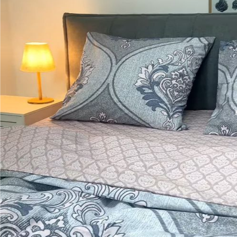 Тканина ранфорс щільна, приємна на дотик і виготовляеться із 100% бавовняної крученої нитки. Натуральність матеріалу дає можливість дихати тілу під час сну. А вибираючи комплект Вілюта 23233 ранфорс полуторна з принтом вензелів на сірому фоні, ви отримаєте також естетичну насолоду.