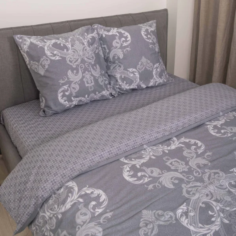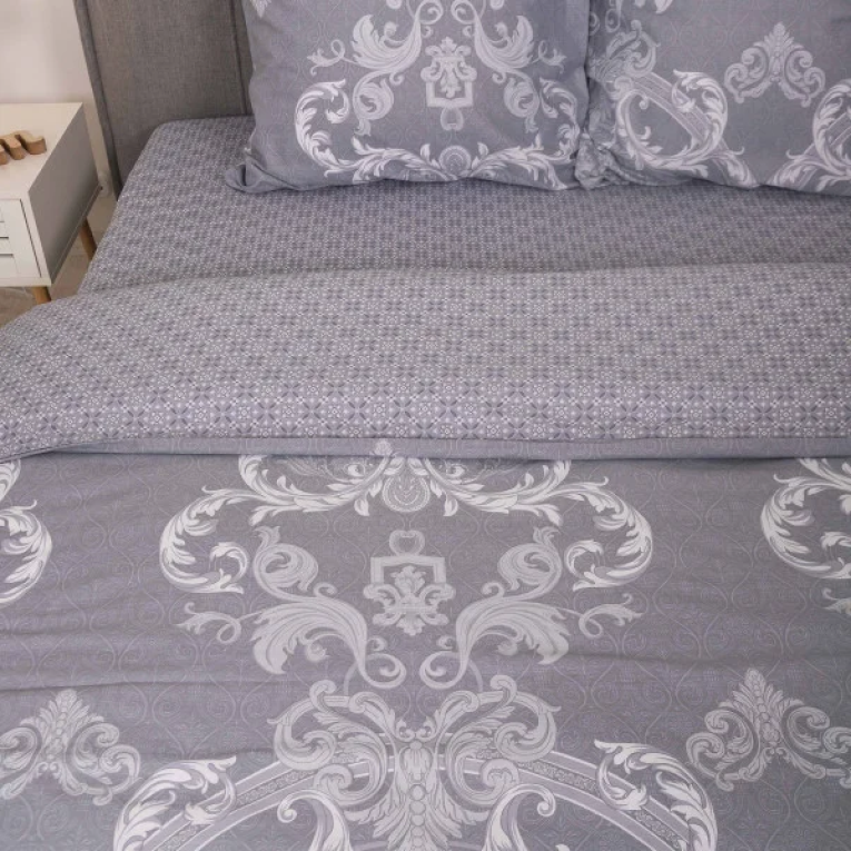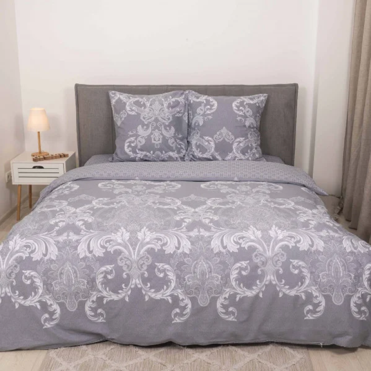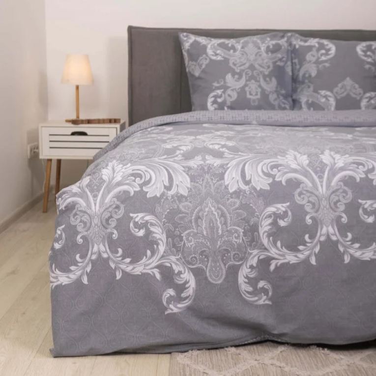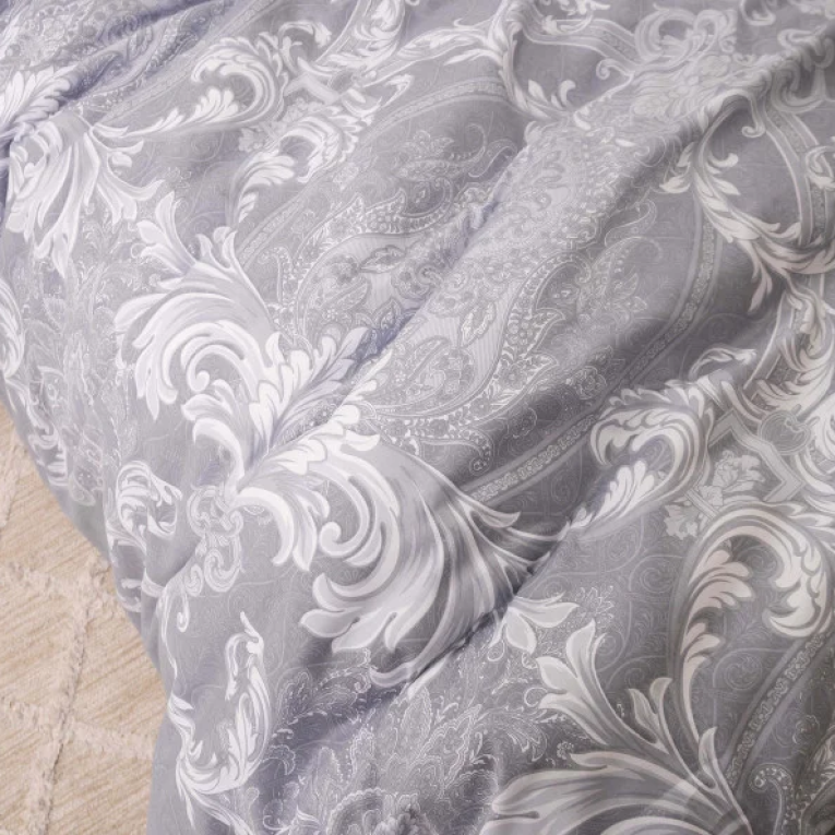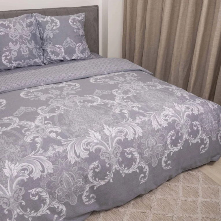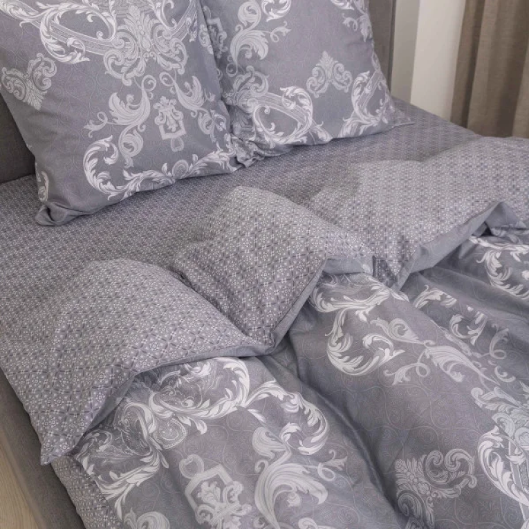 Говорячи про тканину сатин, можна сказати що це щільна тканина певного саржевого плетіння, за рахунок якого матеріал з одного боку гладкий як шовк. Satin выробляеться із 100% бавовняної нитки. Натуральність матеріалу дає можливість дихати тілу під час сну. Замовивши модель Вілюта сатин 633 із шикарними візерунками на сірому фоні ви не тільки прикрасите спальню, але і подаруйте собі ніжні дотики шовку. Підійде підліткам і дорослим.