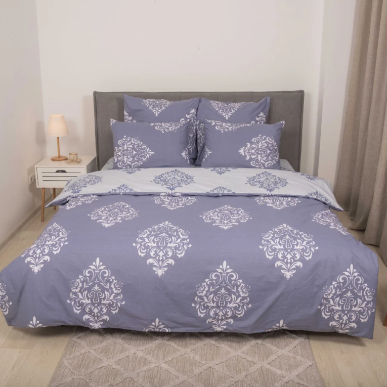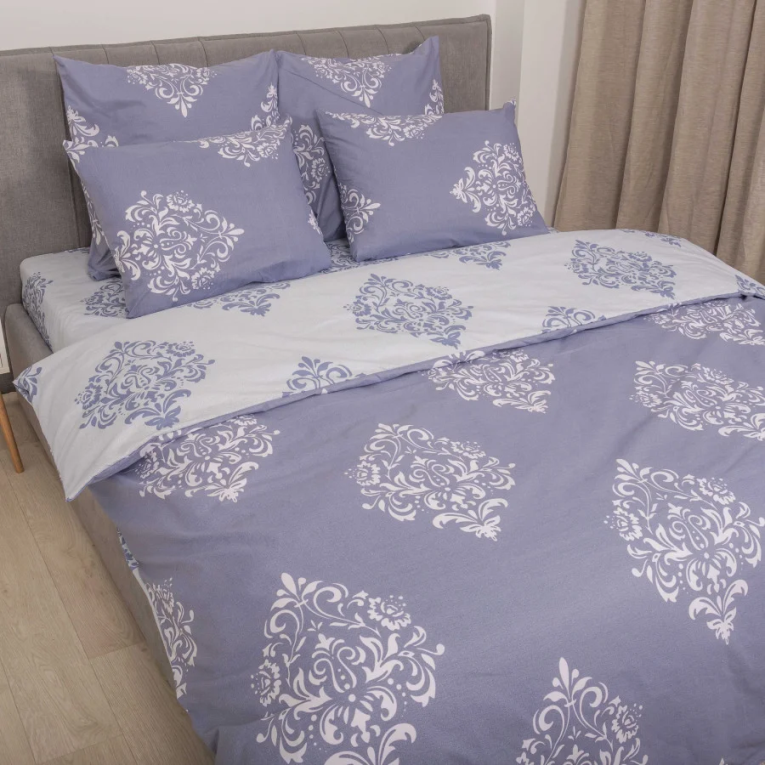 Тканина ранфорс щільна, приємна на дотик і виготовляеться із 100% бавовняної крученої нитки. Натуральність матеріалу дає можливість дихати тілу під час сну. А комплект Вілюта 19001 з візерунками на фіолетовому фоні буде приносити естетичну насолоду подружжю.