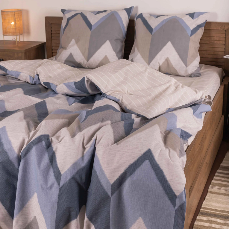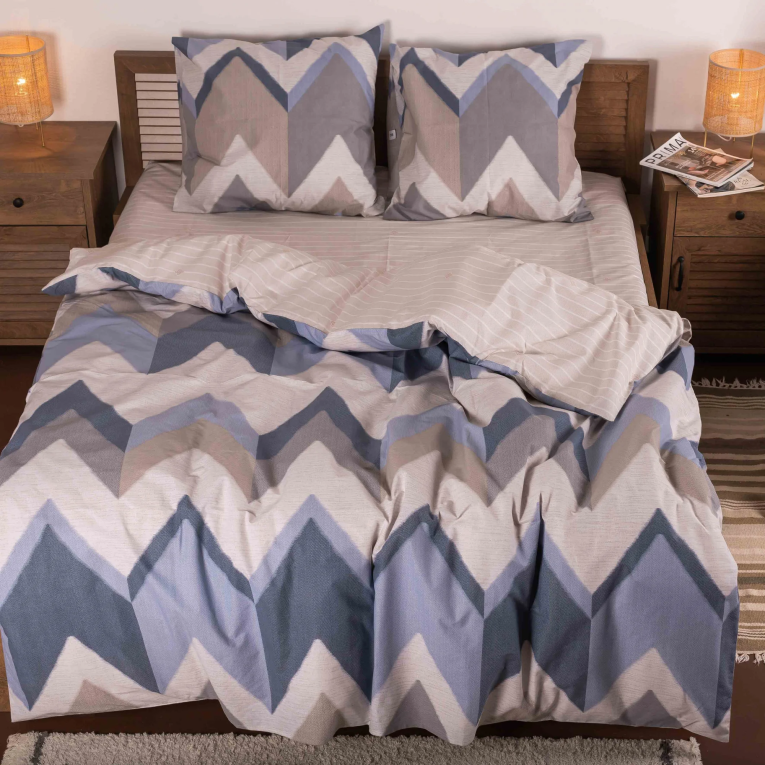 Тканина ранфорс щільна, приємна на дотик і виготовляеться із 100% бавовняної крученої нитки. Натуральність матеріалу дає можливість дихати тілу під час сну. А комплект 23226 Вілюта з принтом "абстракція", буде приносити естетичну насолоду.