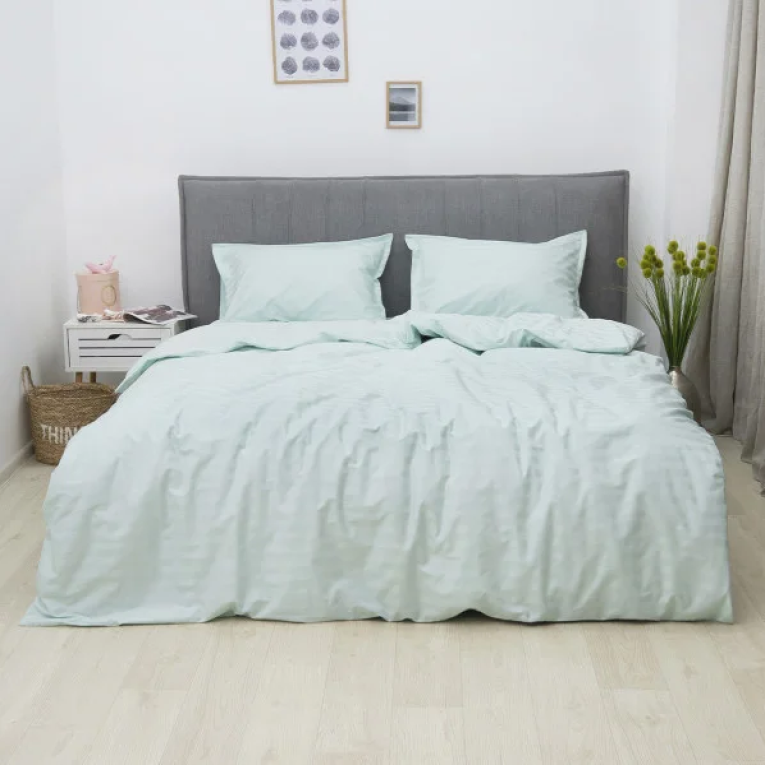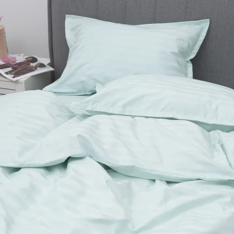 Говорячи про тканину страйп сатин, можна сказати що це щільна тканина певного жаккардового плетіння, за рахунок якого матеріал полосатий - одна полоска матова, інша глянець. Satin выробляеться із 100% бавовняної нитки. Натуральність матеріалу дає можливість дихати тілу під час сну. А куплена постільна білизна бірюзового кольору 84 Вілюта сатин страйп привнесе екстравагантність та зробить розкішною кожну спальню. Підійде на двоспальне сімейне ліжко. Часто закупають для готелей.